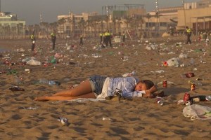 What you do with your fire is really up to you, but drinking excessively and jumping over it is really popular, especially down at the beach. From about 9pm, families, friends and bewildered tourists will begin to gather on the city’s sands with food, cava, wood and bags of fireworks and settle down to a night of carnage.
