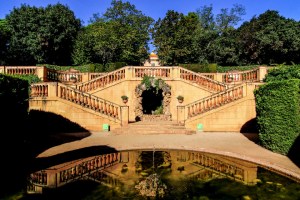 On the lower terrace is the hedge maze that gives the park its name, made up of 750 metres of trimmed cypress trees and if you reach the centre there is a statue of the god Eros.
